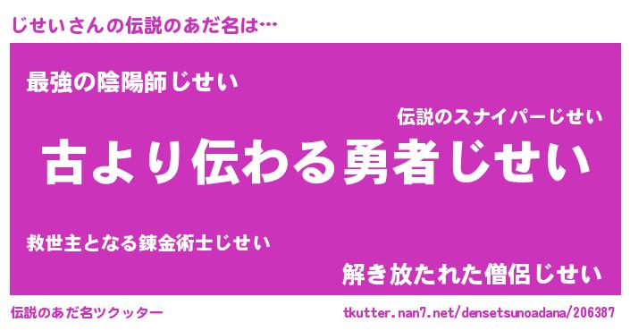 | ポケモン風あだ名 | 『ジセキング』『ゼニジセ』 |