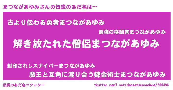 男性向けラノベタイトル風あだ名 | 『まつながあゆみの嫁は女の子じゃないと思った?』 |