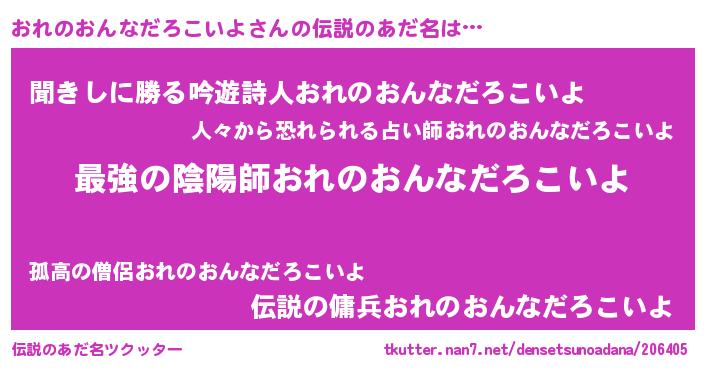 ファンタジー風あだ名 | 『エターナルオレノオンナダロコイヨー』 |
