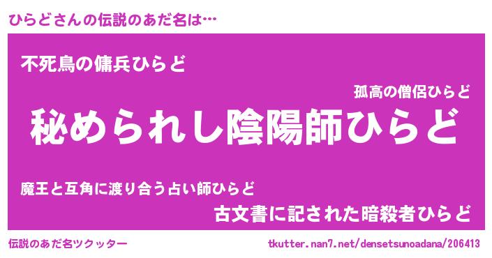 | ファンタジー風あだ名 | 『エターナルヒラドー』『ヒラフェル』 |