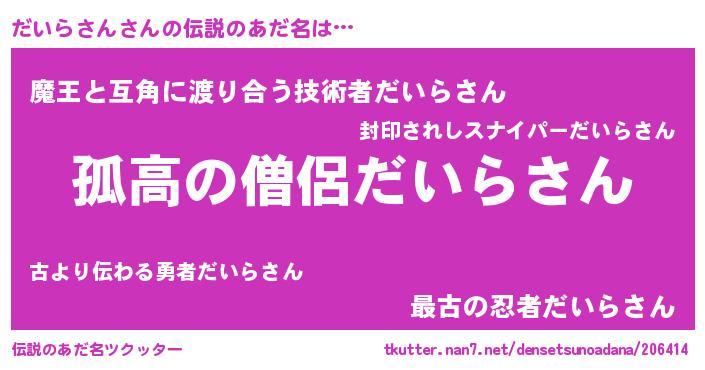 | 意味不明あだ名 | 『住所不定無職だいらさん(62歳)』 |