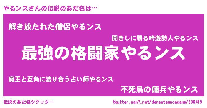 | 意味不明あだ名 | 『やるンスフォーエバー』 |
