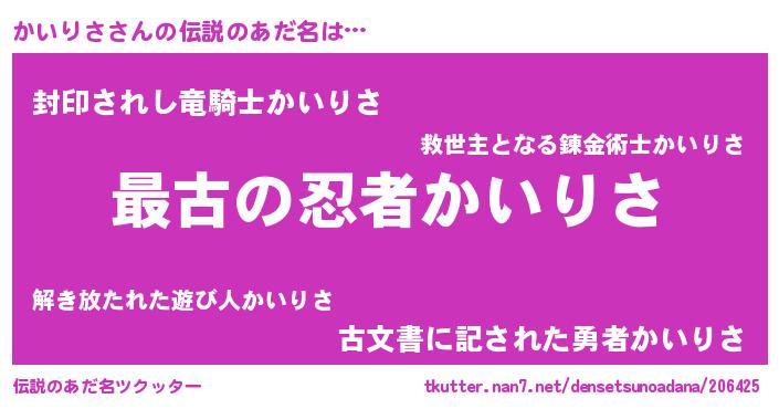 | 意味不明あだ名 | 『かいりさフォーエバー』『自称かいりさ』 |