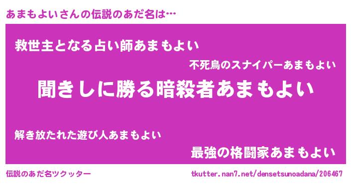 | 胡散臭い通販商品みたいなあだ名 | 『絶対に幸福をもたらす健康食品…その名も「あまもよい」』 |