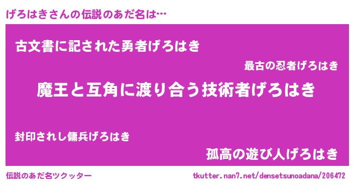 | ポケモン風あだ名 | 『ゲロゴンZ』『ゲックウザ』 |