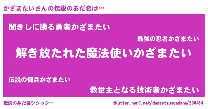 | 意味不明あだ名 | 『住所不定無職かざまたい(1歳)』 |