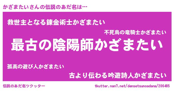 | ファンタジー風あだ名 | 『エターナルカザマタイー』『ゼカザトゥ』 |