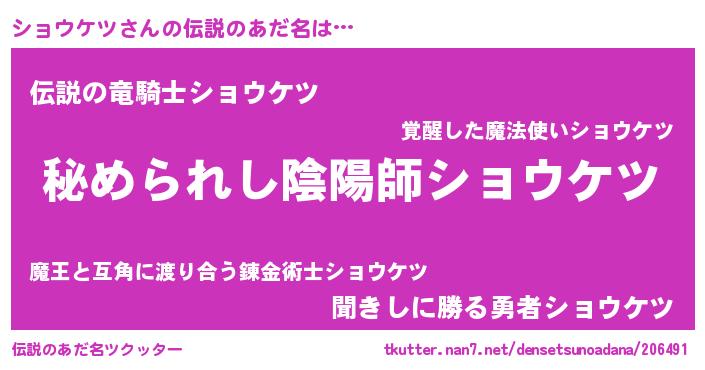 | 恥ずかしいあだ名 | 『ショっちょ』『ショウケツデラックス』 |