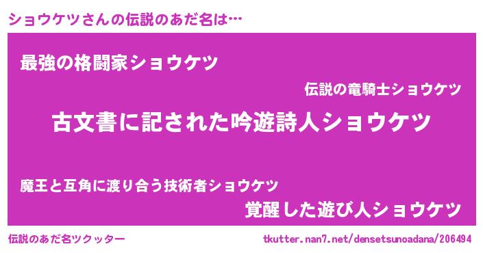 | 意味不明あだ名 | 『永久保存ショウケツ』『自称ショウケツ』 |