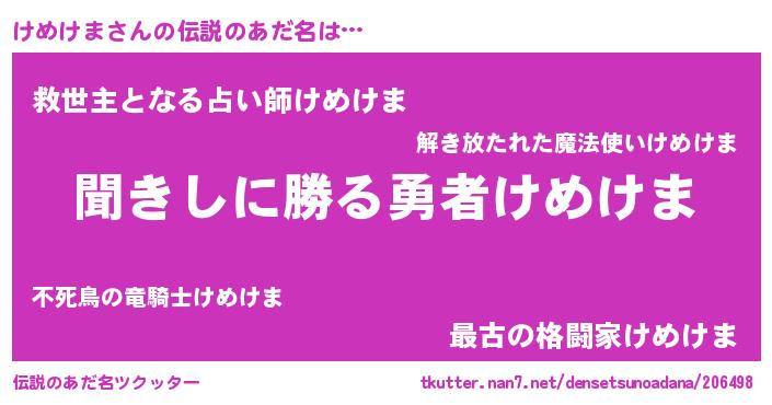 | 意味不明あだ名 | 『永久保存けめけま』『自称けめけま』 |