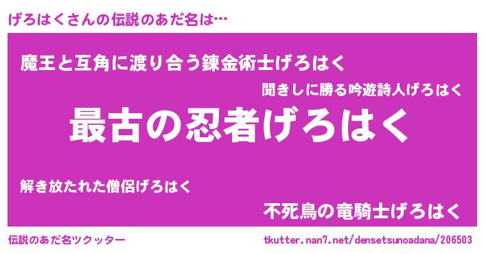 | 意味不明あだ名 | 『住所不定無職げろはく(14歳)』 |