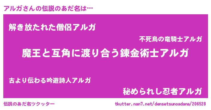 | 男性向けラノベタイトル風あだ名 | 『転生したらアルガだった件』 |