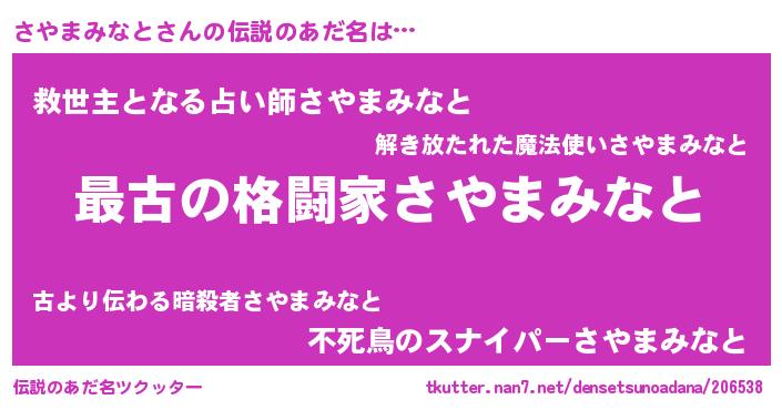 | 意味不明あだ名 | 『住所不定無職さやまみなと(13歳)』 |