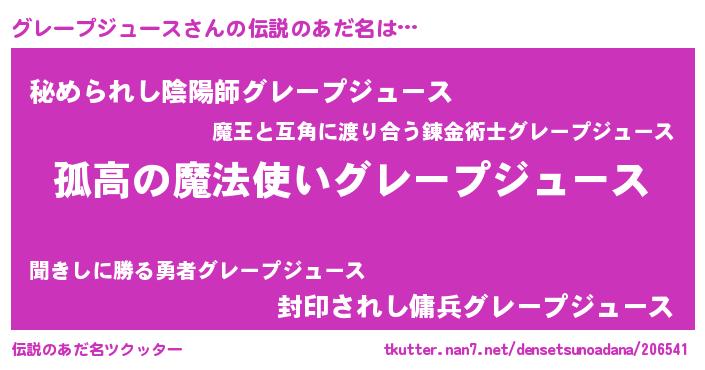 | 意味不明あだ名 | 『自称グレープジュース』 |