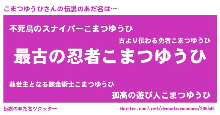 | 意味不明あだ名 | 『自称こまつゆうひ』 |