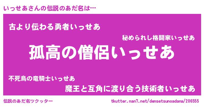 | 男性向けラノベタイトル風あだ名 | 『緋弾のイッセア』『魔弾の王といっせあ』 |