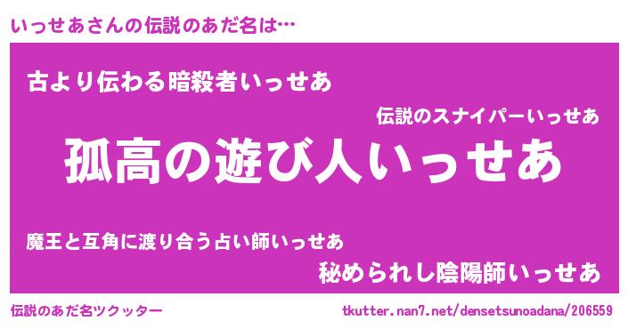 | 意味不明あだ名 | 『とにかく怪しいいっせあ』 |