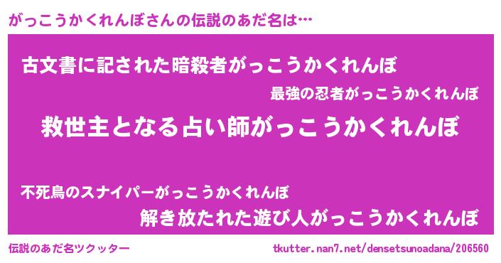 | ヘコむあだ名 | 『がっこうかくれんぼ(笑)』『がっっ子』 |