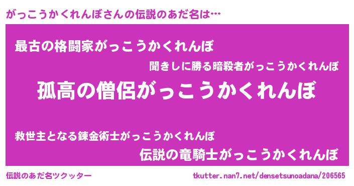 | ヒーロー風カッコイイあだ名 | 『暗黒騎士ガッ』『仮面ガッダー』 |