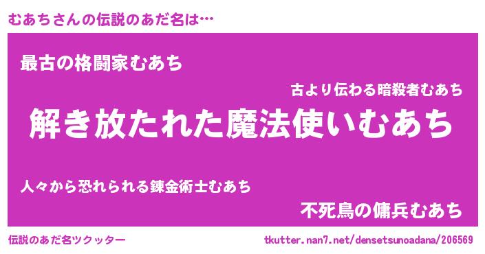 | 男性向けラノベタイトル風あだ名 | 『転生したらむあちだった件』 |