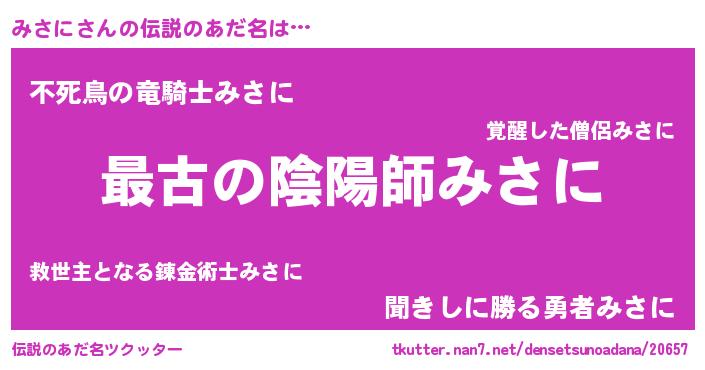 | ファンタジー風あだ名 | 『エターナルミサニー』『カークミサラー』 |