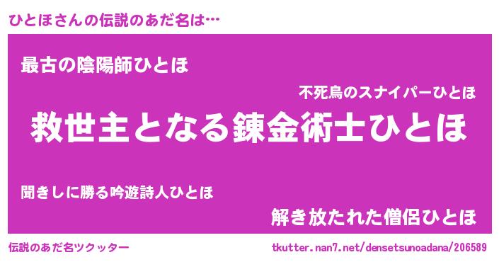 | ヒーロー風カッコイイあだ名 | 『仮面ヒトダー』『愛の使者ひとほ』 |