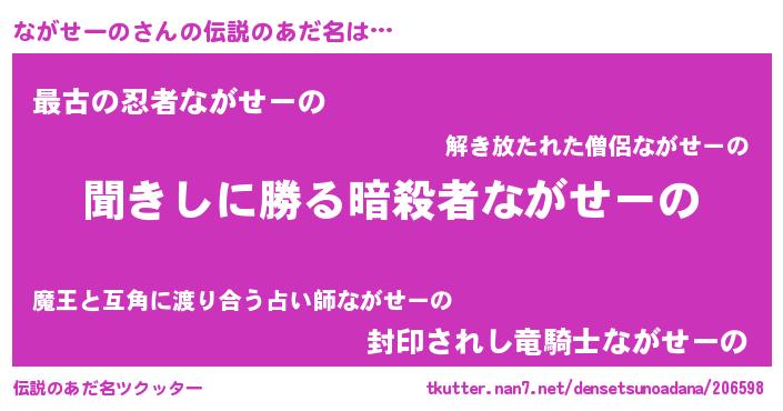 ヒーロー風カッコイイあだ名 | 『超時空戦士ナガセーノ』『銀牙騎士ナガ』 |