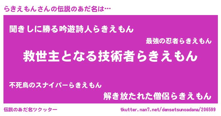 ヘコむあだ名 | 『らきえもん(小並感)』『らきを』 |