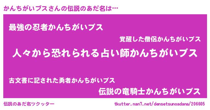 | ヒーロー風カッコイイあだ名 | 『正義の使者かんちがいブス』 |