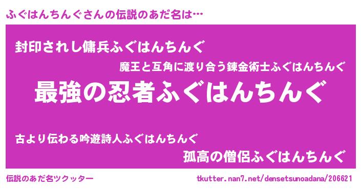 | 胡散臭い通販商品みたいなあだ名 | 『あなたにだけ特別に提供する限定10本のレアな日本酒…その名も「ふぐはんちんぐ」』 |