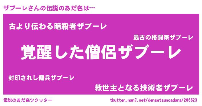 | 意味不明あだ名 | 『自称ザブーレ』『永久保存ザブーレ』 |