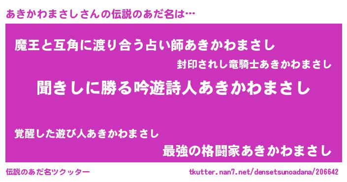 | 欧米人風あだ名 | 『ダルビッシュあきかわまさし』 |