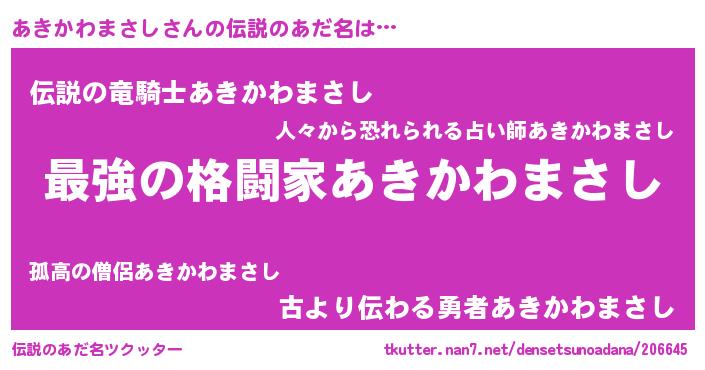 | ヒーロー風カッコイイあだ名 | 『ウルトラあきかわまさしマン』 |