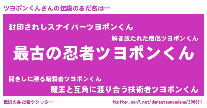 | ファンタジー風あだ名 | 『エターナルツヨポンクンー』 |