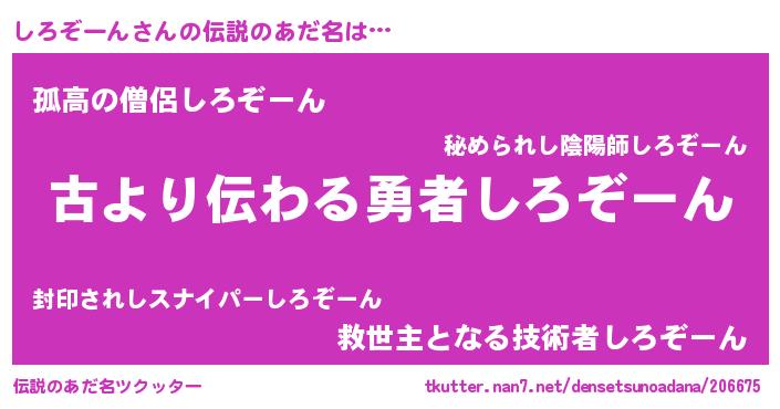 | ヘコむあだ名 | 『しろぞーん(遠い目)』『しろお』 |