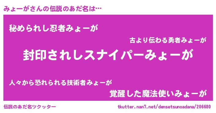 | ファンタジー風あだ名 | 『ミョフェル』『エターナルミョーガー』 |