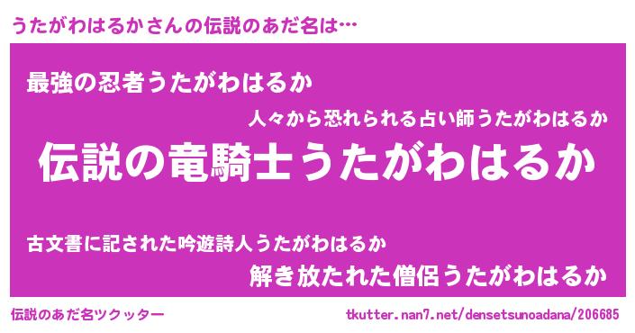 | 意味不明あだ名 | 『住所不定無職うたがわはるか(2歳)』 |