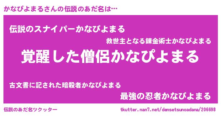 | 意味不明あだ名 | 『とにかく怪しいかなぴよまる』 |