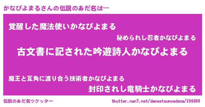 | 女子向けラノベタイトル風あだ名 | 『闇のかなぴよまる』 |