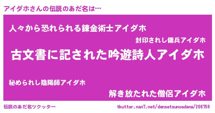 | ヘコむあだ名 | 『アイダホ(小並感)』『アイを』 |