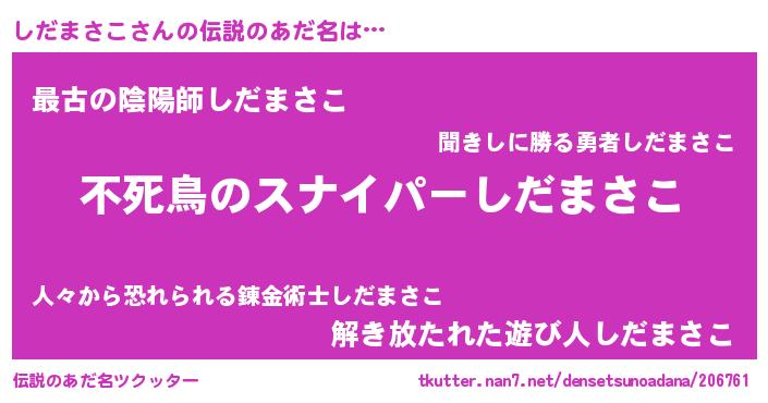 | 意味不明あだ名 | 『住所不定無職しだまさこ(93歳)』 |