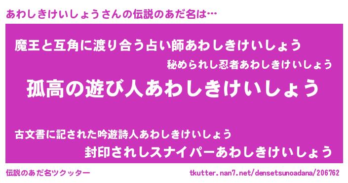 | 男性向けラノベタイトル風あだ名 | 『アワシキケイショウスレイヤー』 |