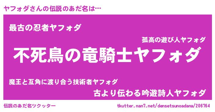 | ファンタジー風あだ名 | 『ヤフフェル』『エターナルヤフォダー』 |