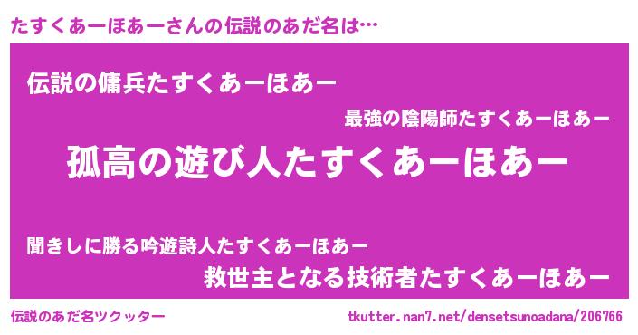 | 胡散臭い通販商品みたいなあだ名 | 『信頼と実績のペンダント…その名も「たすくあーほあー」』 |