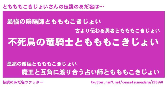 女子向けラノベタイトル風あだ名 | 『ともももこきじょい姫と円卓の騎士』 |