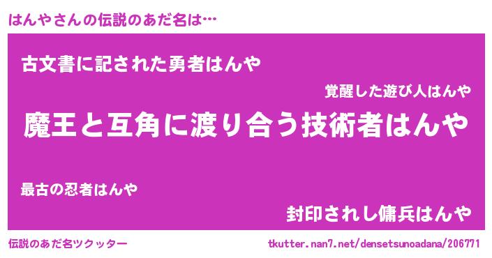 | ヘコむあだ名 | 『はんや(小並感)』『はんもー』 |