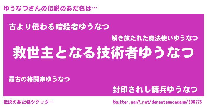 | ヘコむあだ名 | 『ゆうなつ(笑)』『ゆうにゅー』 |