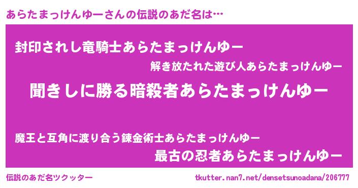| 意味不明あだ名 | 『永久保存あらたまっけんゆー』 |