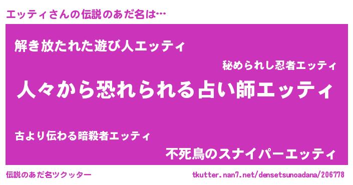 | ヒーロー風カッコイイあだ名 | 『正義の使者エッティ』『銀牙騎士エッ』 |