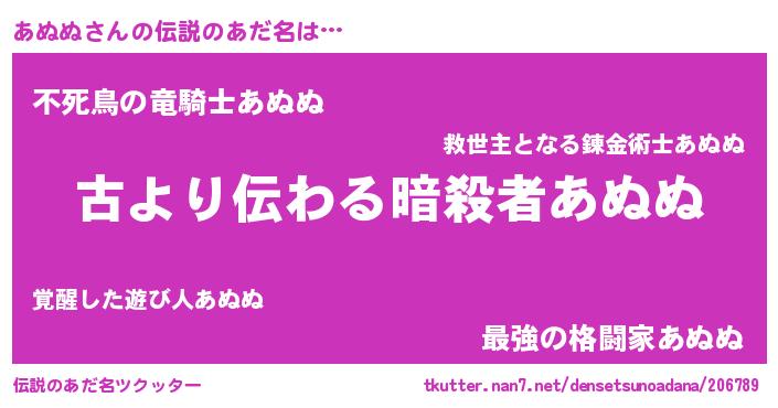 | 2回繰り返すあだ名 | 『くたくた』『あぬあぬ』『ああぬぬ』 |